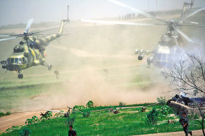 本報吉林洮南7月26日電 記者柴永忠、孫兆秋報道:茫茫草原,狂飆乍起?茽柷卟菰钐,歷時5天的“和平使命—2009”中俄聯(lián)合反恐軍事演習今天舉行最后一次大規(guī)模實兵演習。