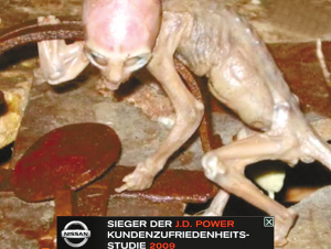 據(jù)德國《圖片報》8月24日報道,墨西哥電視臺近日公布了一條令人難以置信的消息,2007年5月在該國的一個農(nóng)場內(nèi),人們在一個動物陷阱里發(fā)現(xiàn)了仍然活著的外星人寶寶!