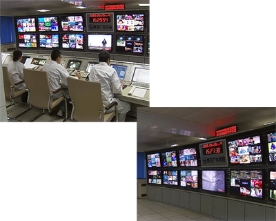 這是陜西廣電網(wǎng)絡(luò)公司的運(yùn)行調(diào)度部的前端機(jī)房,它是把省市縣三級(jí)網(wǎng)絡(luò)貫通,進(jìn)行整合,陜西省內(nèi)的電視用戶收看的數(shù)字電視節(jié)目,就是通過這個(gè)機(jī)房傳輸過去的。