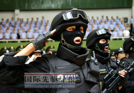 在最繁華的西單商業(yè)街,出現(xiàn)了戴著墨鏡的特警。8月22日,國慶安保巡邏防控啟動(dòng)儀式在這里進(jìn)行,百余名由特警、民警、保安組成的巡邏隊(duì)伍,在鬧市街頭巡邏。這著實(shí)讓百姓們開了把眼界!皠偪吹綍r(shí)有一絲緊張,”當(dāng)天,正在西單逛街的彭女士說:“但覺得很安全,畢竟是國慶嘛!