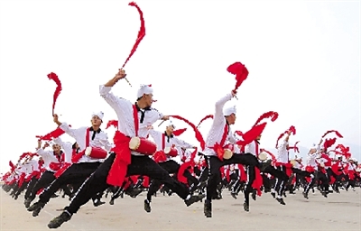 劉國(guó)超:安塞腰鼓特別值得期待。1000多名來(lái)自陜西的農(nóng)民,白衣紅鼓,在經(jīng)過(guò)天安門廣場(chǎng)時(shí)跳躍著打響歡鼓。這么大的規(guī)模,這么長(zhǎng)的距離,邊行進(jìn)邊打腰鼓是一個(gè)很大的創(chuàng)新。這個(gè)節(jié)目的意義也很深遠(yuǎn),一方面我們不應(yīng)該忘記歷史上農(nóng)民為中國(guó)革命作出的貢獻(xiàn),另一方面也體現(xiàn)了當(dāng)代社會(huì)主義新農(nóng)村中農(nóng)民嶄新的精神風(fēng)貌。