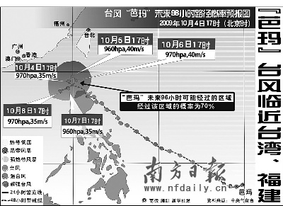 雖然“芭瑪”5日將繼續(xù)在南海東北部回旋少動(dòng),強(qiáng)度變化不大,但由于明天是農(nóng)歷八月十八,天文大潮受“芭瑪”和南下冷空氣的共同影響,5日白天至夜間,巴士海峽、巴林塘海峽、臺(tái)灣海峽、南海東北部和中部偏東海域及臺(tái)灣恒春半島將有7~9級(jí)大風(fēng),部分海域和地區(qū)陣風(fēng)可達(dá)10~11級(jí),“芭瑪”中心經(jīng)過的附近海域的風(fēng)力有10~12級(jí),陣風(fēng)可達(dá)13~14級(jí);東海、臺(tái)灣以東洋面、臺(tái)灣省沿海(除恒春半島外)、浙江沿海、福建沿海、廣東東部沿海也將有6~8級(jí)大風(fēng),部分海域或地區(qū)陣風(fēng)可達(dá)9~10級(jí);臺(tái)灣大部將有大到暴雨,其中臺(tái)灣東北部和臺(tái)灣恒春半島的部分地區(qū)有大暴雨。