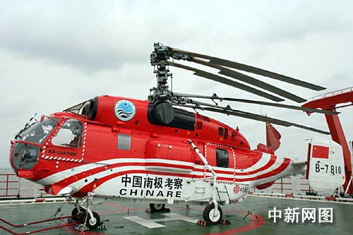 在“雪龍”號(hào)船尾的停機(jī)坪上,記者見到了中國(guó)南極考察首架自備卡-32直升飛機(jī)。由于在航行過(guò)程中需要存放在船上的機(jī)庫(kù)中,所以飛機(jī)螺旋槳的旋翼還未展開。船員告訴記者,該型直升機(jī)吊掛能力可達(dá)4噸,是以前船載機(jī)型的4倍左右,成為南極地區(qū)目前使用的最大噸位直升機(jī)。它可直接進(jìn)行船岸之間來(lái)回運(yùn)輸,更好地滿足南極新老三座考察基地的物資保障需求。另外,“雪龍”號(hào)此次科考任務(wù)同樣將配備兩架直升飛機(jī),除了該架自備卡-32外,另外一架從國(guó)外租借的直升飛機(jī)將在新西蘭上船。