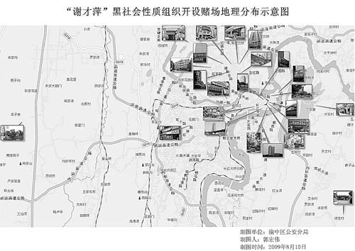 2000年開始,謝才萍利用自己特殊的家庭背景和社會關(guān)系,在渝中區(qū)四處開設(shè)賭場,聚眾賭博。