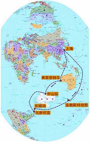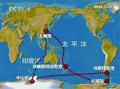 按計(jì)劃,雪龍?zhí)柎诵械拇笾侣肪是:從上海經(jīng)新西蘭的克萊斯特徹奇港到長城站,再從長城站到阿根廷的烏斯懷亞港進(jìn)行補(bǔ)給,后經(jīng)此港到達(dá)中山站,完成科考任務(wù)后返回上海。