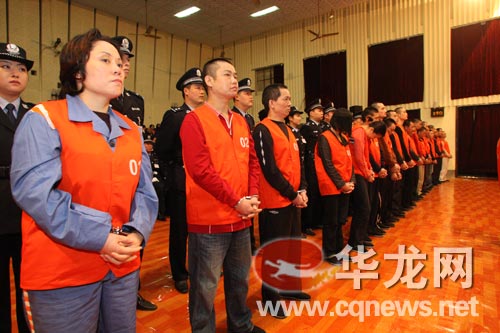 今日(14日)上午9時30分,謝才萍“涉黑”團伙共22人,站上重慶市第五中級人民法院被告席受審。被指控為團伙頭目的謝才萍,一審被指控犯組織、領導黑社會性質組織罪、開設賭場罪、非法拘禁罪、容留他人吸毒罪、行賄罪五宗罪。
