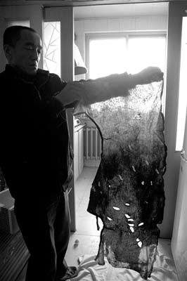 蘭建國遇害前所穿警服已被取回家中。警服背后有幾十處破痕,泥土和血跡混在一起。背心上也有幾十處小孔,呈三片分布,血跡斑斑。警褲也有劃痕。李海燕表示,其丈夫頸部、背部、腿部傷痕累累,刀傷共達(dá)50多處。針對網(wǎng)上流傳的一根手指被逃犯切斷后用于開啟指紋門一事,她說:“小蘭(蘭建國)的10根手指都在手上,其中右手拇指從虎口處被切開,幾乎斷裂,僅靠皮連著手掌!