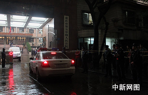 盡管早上的山城雨霧蒙蒙、天氣灰暗。中新社記者在重慶市第五中級法院門口看到,各路媒體記者已在法院內(nèi)外忙碌?梢耘月犕彽挠浾咴9點以前便通過嚴格安檢、進入法庭;在法院門口,聚集了數(shù)十位本地和外地媒體記者和百名群眾,一位外國媒體記者也在現(xiàn)場采訪圍觀群眾。