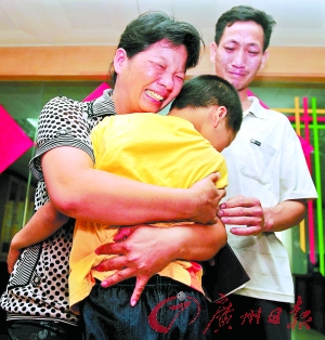 昨日,好消息終于傳來,經(jīng)過DNA數(shù)據(jù)對比,“寶貝尋家”中編號為16的孩子被證實為東莞高埗鎮(zhèn)菜販顧先生夫婦的親生兒子顧金龍,他成為60名兒童中第二位找到親生父母的男童。昨日下午1時多,5年多未見過親生兒子的顧先生夫婦一把抱過兒子,喜極而泣。悲喜交集的母親含淚向民警下跪致謝。