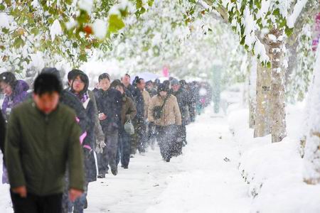 此次大暴雪主要集中在黃河兩岸。據(jù)省市氣象局發(fā)布的資料,11日至12日,我省除了東南部外,其他大部分地區(qū)出現(xiàn)10毫米以上的暴雪,其中中部地區(qū)出現(xiàn)20毫米暴雪,我省北中部地區(qū)達(dá)到20厘米的積雪深度。除信陽、駐馬店、周口三地區(qū)和南陽、商丘兩地區(qū)東南部出現(xiàn)降雨或凍雨外,其他地區(qū)普降大到暴雪,降雪量一般在15~45毫米,最大降雪出現(xiàn)在嵩縣,達(dá)55毫米。三門峽、洛陽、鄭州三市及黃河以北地區(qū)出現(xiàn)了15~30厘米深的積雪,其中鄭州積雪深度達(dá)32厘米。受凍雨影響,東南部出現(xiàn)了5~19毫米的電線積冰。