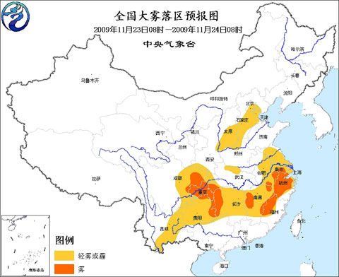中國氣象局與交通運(yùn)輸部2009年11月22日聯(lián)合發(fā)布的全國主要公路氣象預(yù)報中受霧影響的主要路段有: