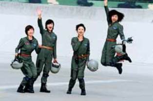 10月1日上午,盡管首都北京上空陽光明媚,但殲擊機女飛行員駐訓(xùn)的華北某機場,云底高500米、云頂高1200米,能見度只有1.3公里。這種情形下能不能按時起飛,既是意志的考驗,也是生死的考驗。她們以忠誠無畏的戰(zhàn)斗決心,迅速確定了長僚機組500米跟進起飛集合方案,梯隊飛機56秒內(nèi)一次全部升空。梯隊飛到1200-1300米高度,一直在兩個云層的夾縫中飛行,直到通州上空氣象條件好轉(zhuǎn)后才穿出云層。到達天安門廣場上空時,面臨氣流較大、自重較輕的教練機嚴重顛簸的情況,姑娘們以良好的心理素質(zhì)和過硬的飛行技術(shù),保持了隊形和精度,秒米不差地通過人民英雄紀念碑上空。