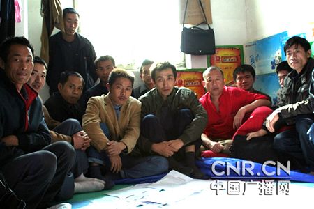 說話的人叫鐘家泉,是這群農(nóng)民工的代表,記者見到他是在深圳市郊的一處簡(jiǎn)易房?jī)?nèi),包括廁所在內(nèi),房間面積不超過10平米,而這里卻住著他的10多位工友,地上沒有床,救濟(jì)站提供的棉被是房間里唯一的家具。這些人有的因?yàn)椴⊥匆呀?jīng)無法工作,有的因?yàn)橐伤茐m肺而被包工頭辭退,難聞的氣味和對(duì)死亡的恐懼彌漫著整個(gè)房間。他們因?yàn)槁殬I(yè)病檢查受阻而走到一起,目前已有120多人。他們都有不同程度的咳嗽、胸悶、呼吸困難等癥狀。工人們說,十多年來他們一直在深圳當(dāng)炮工,每天都要吸入大量粉塵,但以前并不知道這會(huì)危及生命。他們說,自己已經(jīng)有兩三個(gè)老鄉(xiāng)死了,死掉的時(shí)候他們都親眼看到了,現(xiàn)在感覺自己的身體和死掉人的癥狀幾乎相同。而一位在湖南張家界中醫(yī)院做過檢查的工友說:醫(yī)生照出來一看,說這個(gè)病很嚴(yán)重,最后,我跟他說明了,我說我打了幾十年風(fēng)鉆,他說肯定是塵肺病。