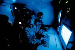 在行動(dòng)的各個(gè)環(huán)節(jié),擔(dān)負(fù)干擾的“藍(lán)軍”電磁分隊(duì)加緊實(shí)施干擾!八{(lán)軍”電磁分隊(duì)不時(shí)釋放錯(cuò)誤誘導(dǎo)信息,干擾“紅軍”指揮通信,誘使裝甲車隊(duì)向錯(cuò)誤地域開進(jìn),“紅軍”指揮員及時(shí)啟用隱蔽指揮網(wǎng)接受上級(jí)命令,各級(jí)指揮員迅速采取應(yīng)對(duì)措施,開通新的通信網(wǎng)絡(luò)。隨著信息對(duì)抗的展開,“藍(lán)軍”啟動(dòng)多種干擾方式對(duì)“紅軍”指揮控制通信系統(tǒng)進(jìn)行干擾壓制,紅方指揮員啟用反干擾預(yù)案,綜合運(yùn)用多種手段對(duì)抗,并設(shè)置佯動(dòng)通信網(wǎng),對(duì)“藍(lán)軍”實(shí)施戰(zhàn)術(shù)欺騙,保障了指揮通信的順暢。“藍(lán)軍”隨即啟用動(dòng)態(tài)干擾網(wǎng)絡(luò),搜尋“紅軍”指揮通信網(wǎng),采取從短波、超短波、到微波接力等多波段覆蓋式干擾壓制,此時(shí)的“紅軍”大部通信方式中斷,采取有線通信、衛(wèi)星通信與運(yùn)動(dòng)通信相結(jié)合的方式,保證了不間斷的指揮。