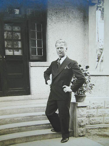 京特夫人認(rèn)識(shí)的人中,有位叫愛德華·施佩林(Eduard Sperling),是德國(guó)上海保險(xiǎn)公司的職員。7年前,京特夫人在南京就告訴記者,她相贈(zèng)的照片拷貝中,有一張上面那柱拐杖的就是施佩林(見圖④)。
