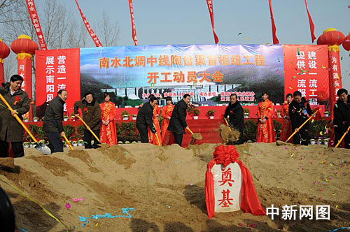 中新網(wǎng)南陽(yáng)12月28日電 (記者 曹錚 通訊員 王濤 高帆)今日上午,備受世人矚目的南水北調(diào)中線陶岔渠首樞紐工程開工動(dòng)員大會(huì)在河南省淅川縣九重鎮(zhèn)陶岔村渠首工程施工現(xiàn)場(chǎng)隆重舉行,這標(biāo)志著南水北調(diào)中線工程建設(shè)進(jìn)入一個(gè)全新階段。