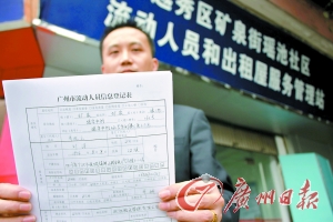 然而記者仔細(xì)看了看工作人員要求填寫的登記表,卻發(fā)現(xiàn)還是原先辦暫住證時所填的《廣州市流動人員信息登記表》,至于居住證的申請表是何模樣,就連工作人員也稱沒能見上一眼。