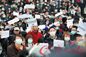昨日下午1時許,空中不時飄灑著細(xì)雨,高明市民劉先生冒雨走在人群中!拔铱吹接薪M織者說24日將舉行這個活動,于是我便報了名。”有網(wǎng)友在論壇上透露,通過論壇信件等各種方式報名的市民已經(jīng)達(dá)到數(shù)百人的規(guī)模。