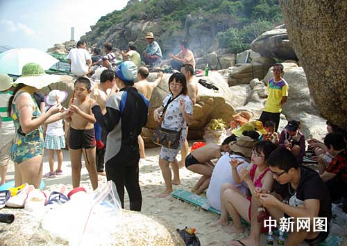2月4日上午,執(zhí)法人員接到舉報(bào),三亞亞龍灣海域附近的百福灣每天都有數(shù)百人前去潛水、海底觀光。但是,等到聯(lián)合執(zhí)法人員趕到時(shí),偌大的海灘上只有五六十人在海邊淺水區(qū)或游泳、拍照、或燒烤等,潛水、海底觀光的一個(gè)也沒有發(fā)現(xiàn),除了岸邊的礁石上有數(shù)十個(gè)潛水呼吸用的“吸嘴”外,連潛水必備的器材一套也沒有發(fā)現(xiàn)。
