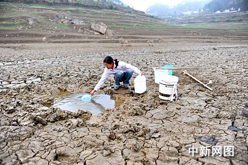 中新網(wǎng)貴陽(yáng)3月24日電 題:貴州開陽(yáng)縣干旱災(zāi)區(qū)見(jiàn)聞:飲用水源庫(kù)底水族成“化石”