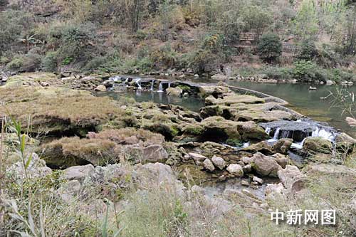 瀑布下的水潭,裸露出在河床底部的石頭,順著水流的方向一眼望去,不少石頭上竟長滿了青草。記者從景區(qū)工作人員處獲悉,受這次大干旱的影響,黃果樹瀑布的上游來水減少,使瀑布景觀漸受影響。到了3月,本是汛期的當地卻無雨水可降,大瀑布現每天依靠水庫閘壩調節(jié)維持景觀。