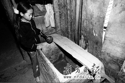 偏僻落后的牛角村,以種植畜養(yǎng)為主的原始經(jīng)濟(jì)遭遇強(qiáng)旱后,人均年收入已降至600多元。村里的一些年輕人本想外出打工,卻遭遇入不敷出的困境。楊昌毅就曾到深圳做過兩年保安,“每個(gè)月1200元工資,只能在當(dāng)?shù)仞B(yǎng)活我自己,我家里還有父母,兩個(gè)小孩和老婆,根本劃不來。”像楊昌毅這樣在牛角村里已經(jīng)算是能講普通話、會認(rèn)字的“文化人”。而記者在采訪中了解到,更多的牛角村民連自己名字也不會寫,普通話只能聽懂一半。“他們出去打工,只能重復(fù)我的命運(yùn)”,楊昌毅說,而且“每個(gè)星期都要下山挑水,沒有年輕人在家,老人怎么辦?” 南方日報(bào)特派記者謝慶裕