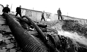 ●3月29日晚8時(shí) 4臺水泵安裝到位,開始抽水。