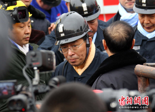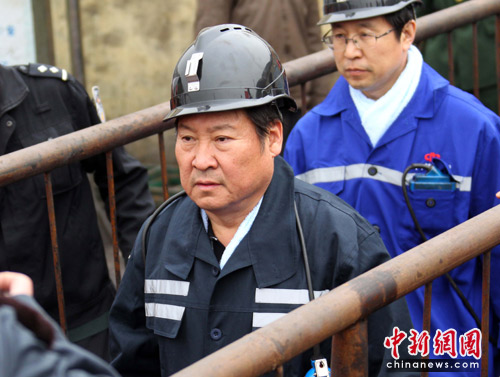 中新網(wǎng)河津3月31日電(張?jiān)?王家?guī)X礦透水事故搶險(xiǎn)進(jìn)入第四天,救援搶險(xiǎn)仍在緊張進(jìn)行。31日中午,國家安監(jiān)總局局長駱林,安全監(jiān)管總局副局長、國家煤礦安監(jiān)局局長趙鐵錘,山西省長王君下井視察搶險(xiǎn)進(jìn)度。