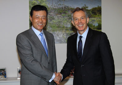 布萊爾熱烈歡迎劉大使來(lái)英履新。他說(shuō),他剛剛訪華歸來(lái),中國(guó)之行令人印象深刻。他一直非常關(guān)注中國(guó)的發(fā)展,近年來(lái)幾乎每年都訪問(wèn)中國(guó),每次能切實(shí)感受到中國(guó)無(wú)時(shí)不在發(fā)生的新變化,看到一個(gè)發(fā)展勢(shì)頭強(qiáng)勁、始終充滿活力的中國(guó)。他認(rèn)為,世界新一代領(lǐng)導(dǎo)人加強(qiáng)對(duì)中國(guó)的認(rèn)識(shí)和了解至關(guān)重要。當(dāng)今世界日新月異,中西方應(yīng)該審慎對(duì)待雙方認(rèn)知差距的演進(jìn),努力保持和發(fā)展互利共贏的伙伴關(guān)系。他相信,無(wú)論英國(guó)大選結(jié)果如何,英國(guó)政府積極發(fā)展對(duì)華關(guān)系的政策不會(huì)改變,任何政黨都會(huì)為加強(qiáng)英中兩國(guó)間的交流與合作而努力。
