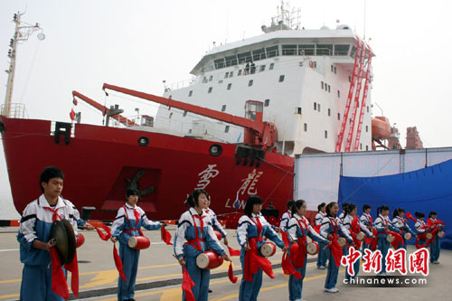 今天上午10點(diǎn),國(guó)家海洋局和上海市人民政府聯(lián)合為我國(guó)第26次南極科考隊(duì)舉行了隆重的歡迎儀式。國(guó)土資源部部長(zhǎng)徐紹史等有關(guān)部門領(lǐng)導(dǎo),以及科考隊(duì)員家屬、單位代表等500余人參加儀式。