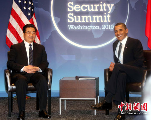 中新社華盛頓4月12日電 (記者 張朔 吳慶才)中國國家主席胡錦濤當(dāng)?shù)貢r間12日下午在華盛頓會見美國總統(tǒng)奧巴馬,雙方就中美關(guān)系及共同關(guān)心的重大國際和地區(qū)問題交換了意見,達成重要共識。胡錦濤就下階段中美關(guān)系發(fā)展提出5點重要主張。