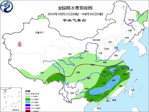中新網(wǎng)4月13日電 中央氣象臺2010年4月13日17時發(fā)布未來三天全國天氣預(yù)報(bào):
