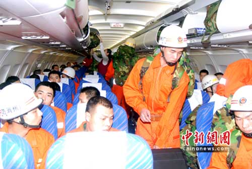 目前,南航的第一架救援包機(jī)已于16時30分滿載著157名公安消防部隊官兵、2.2噸生命探測儀等設(shè)備,從廣州白云機(jī)場起飛,飛赴青海西寧機(jī)場。據(jù)執(zhí)行此次航班的南航廣州飛行部A320機(jī)隊副經(jīng)理朱文學(xué)、副駕駛張漫綠機(jī)組介紹,目前除廣州地區(qū)有雷雨天氣外,航路天氣情況良好,如果正常飛行,飛機(jī)將在三個小時內(nèi)抵達(dá)災(zāi)區(qū)機(jī)場。