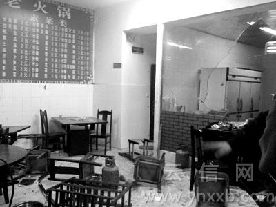 “砸!”一聲“令”下,幾十人拿著砍刀和鋼管,在火鍋店就開始到處亂砍。“噼里啪啦”火鍋店的玻璃窗粉碎性掉落,啤酒瓶、餐具接二連三被砸碎,正在沸騰的火鍋被掀翻在地,墻上、地上灑滿紅油。頓時店里一片混亂,客人、服務(wù)員紛紛沖進廚房躲避。