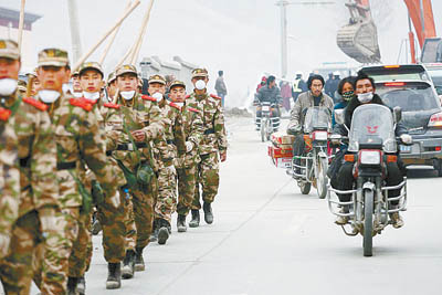 報(bào)紙也很快運(yùn)了進(jìn)來(lái),但種類(lèi)少得可憐。扎辮子的當(dāng)?shù)匦」媚锇押窈竦囊化B漢語(yǔ)和藏語(yǔ)報(bào)紙分發(fā)給她遇見(jiàn)的每一個(gè)路人,很快,許多人手里都攥著兩三份了。