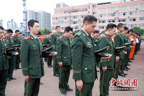 重慶消防官兵表示,在此次默哀儀式上,他們沉痛悼念玉樹(shù)地震遇難同胞。目前,由重慶消防官兵組成的應(yīng)急救援力量仍在集結(jié)中,他們將隨時(shí)待命馳援災(zāi)區(qū)。完