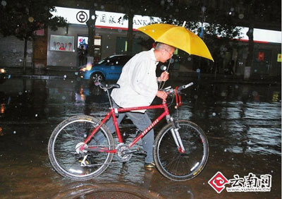 黑壓壓的烏云籠罩了昆明兩個小時之后,昨晚8點,一場從去年9月以來最大的降雨光臨昆明。當豆大的雨點落在昆明家家戶戶的窗戶上時,市民都興奮了。大家的感覺沒有錯,昨天晚上的那場降雨確實是干旱以來的最大一場。雖然降雨只持續(xù)了約一個小時,但是電閃雷鳴間,這場雨已經完全澆濕了昆明城。