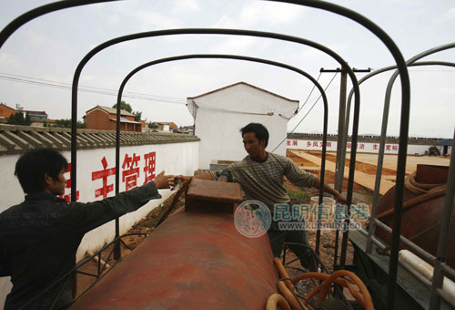 前來(lái)買水的人太多,水井承包人忙得不亦樂(lè)乎——開(kāi)閘抽水、收錢。每一輛拖拉機(jī)抽滿水后,村民都會(huì)主動(dòng)掏出1-2元錢遞給水井承包人。一村民說(shuō),凡是本村二組的村民抽水,每桶價(jià)格都是1元。除了本組村民外,每桶要2元,而拖拉機(jī)上的鐵皮桶只能裝一噸水。