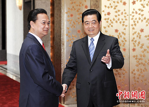 中新網(wǎng)上海4月30日電 (記者 張朔)中國國家主席胡錦濤30日下午在上海會見越南總理阮晉勇。