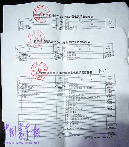 根據(jù)新興村村委會財務(wù)收支結(jié)算公開表計算,1997年~2009年,該村共收取“管理費”195.8萬元。據(jù)此測算,在此期間,新興村至少有2000畝耕地被征用。而王家勛、吳大春等17位新興村村民向中國青年報記者反映,他們統(tǒng)計各村民小組被征地的情況發(fā)現(xiàn),新興村至少已有 2300畝耕地被征用,目前該村至少八成的村民成為失地農(nóng)民。為了證實自己反映內(nèi)容的真實性,這17位村民寫下了證明材料,并簽名按下手印,表示對證明內(nèi)容承擔(dān)法律責(zé)任。