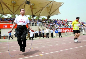 “上次跳繩,那還是40多年前的事了!”別著“00100”號碼牌的傅政華,一臉笑容。在接過裁判遞過來的跳繩后,試跳了幾下,“感覺還行”。