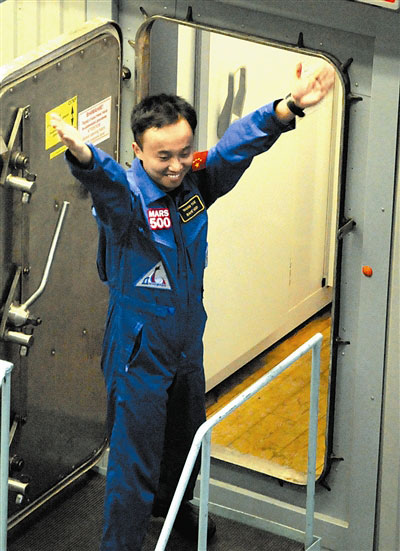 12時(shí)30分,“火星-500”項(xiàng)目總指揮莫魯科夫宣布最終進(jìn)艙的試驗(yàn)乘組名單。除了中國(guó)志愿者王躍外,其余5名志愿者分別為俄羅斯3名、法國(guó)和意大利各1名。
