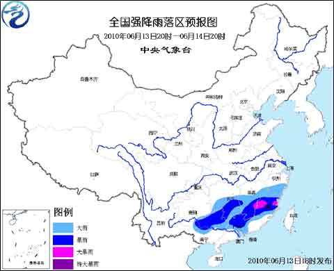 中央氣象臺6月13日18時(shí)發(fā)布暴雨藍(lán)色預(yù)警:
