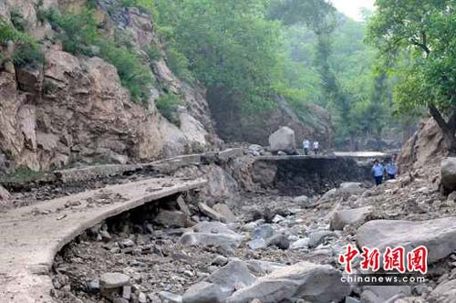 據(jù)介紹,13日晚20時(shí)許,淶水縣九龍鎮(zhèn)突降百年不遇特大暴雨,并伴有大風(fēng)冰雹,頃刻間,山洪裹著巨石、泥漿呼嘯而下,席卷了九龍鎮(zhèn)沿河道的六個(gè)村莊,致使嶺南臺(tái)、莊里、莊頭、高鋪、柏林城、南莊六個(gè)村受災(zāi)嚴(yán)重。據(jù)初步估算,受災(zāi)人口3100多人、牲畜2000多頭(只),倒塌損壞房屋499間、橋梁5座、車輛31輛,毀壞道路10.7公里、耕地1312畝、樹木16925棵,另有兩人失蹤,直接經(jīng)濟(jì)損失達(dá)8197.8萬元。