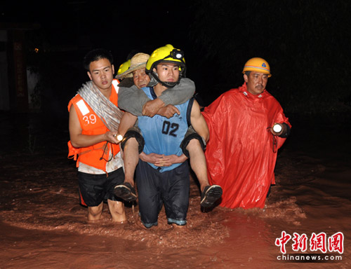 險(xiǎn)情發(fā)生后,四川涼山消防支隊(duì)迅速啟動(dòng)抗洪救災(zāi)應(yīng)急救援預(yù)案,支隊(duì)司令部參謀長余培榮率領(lǐng)消防官兵于22:15分趕到,現(xiàn)場洪水已淹沒了村莊內(nèi)的全部進(jìn)出通道,村民近五分之四的房屋全部進(jìn)水,由于村莊內(nèi)大部分房屋均為土木結(jié)構(gòu)建筑,部分土墻經(jīng)不住洪流的浸泡已出現(xiàn)局部垮塌,一些群眾被困家中無法逃生。