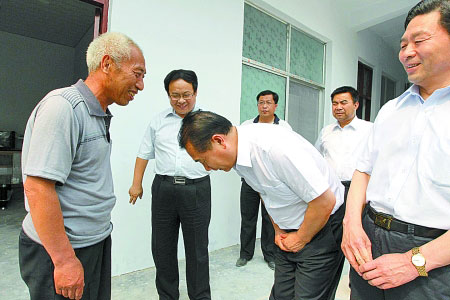 6月21日,省高院院長張立勇率領(lǐng)省高院和商丘市中院兩級法院的領(lǐng)導(dǎo)班子來到柘城縣農(nóng)民趙作海的新家。針對因法院判錯案給趙作海一家?guī)淼睦Ь,張立勇院長向趙作海鞠躬致歉。面對高院院長,趙作海感到極為意外,說:“我對現(xiàn)在的生活很滿意,現(xiàn)在是滿天的云彩都散了……”當(dāng)天上午,兩級法院還就如何避免再次發(fā)生類似案件專門進(jìn)行了反思。