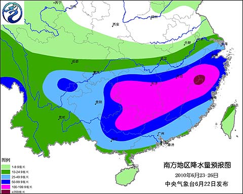中央氣象臺從昨天(22日)下午開始發(fā)布暴雨藍(lán)色預(yù)警信號,今晨06時繼續(xù)發(fā)布,預(yù)計,6月23日08時到6月24日08時,四川盆地南部、重慶南部、貴州中東部、湖南大部、江西中南部、浙江南部、福建大部、廣西北部和東南部等地有大到暴雨,局地有大暴雨;上述部分地區(qū)并伴有短時雷雨大風(fēng)等強對流天氣。