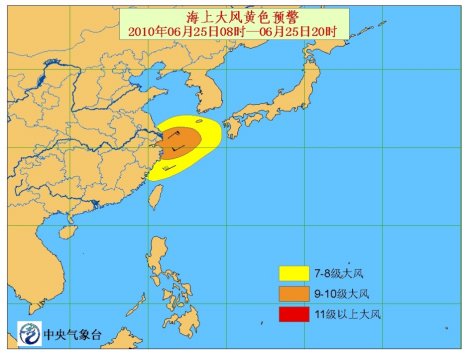 中新網(wǎng)6月25日電 中央氣象臺(tái)6月25日06時(shí)繼續(xù)發(fā)布海上大風(fēng)黃色預(yù)警:受入海氣旋影響, 25日08時(shí)至20時(shí),東海北部海域?qū)⒂?~9級(jí)大風(fēng),陣風(fēng)可達(dá)10~11級(jí)。另外,東海南部海域?qū)⒂?~8級(jí)、陣風(fēng)9級(jí)的西南風(fēng);黃海南部海域?qū)⒂?~8級(jí)、陣風(fēng)9級(jí)的東北風(fēng)。