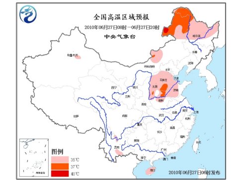 中新網(wǎng)6月27日電 中央氣象臺6月27日06時繼續(xù)發(fā)布高溫藍(lán)色預(yù)警:預(yù)計,今天白天,內(nèi)蒙古東北部和中部的部分地區(qū)、黑龍江大部、山西大部、河北中南部、京津南部、河南北部、山東中西部、海南大部等地有35~37℃的高溫天氣,其中,內(nèi)蒙古東北部、黑龍江西北部、河北南部等地局部最高氣溫可達38℃以上。