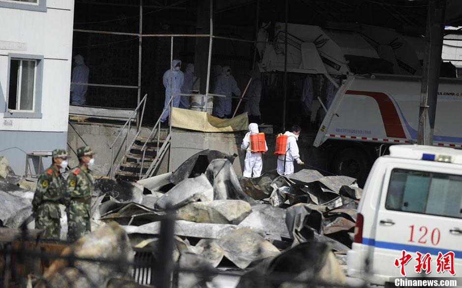 吉林繼續(xù)對禽業(yè)公司火災(zāi)現(xiàn)場進行消殺防疫處理